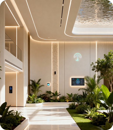 تكامل متقدم يجمع الإضاءة والحدائق الداخلية وأنظمة الأمن ضمن واجهة تحكم واحدة.